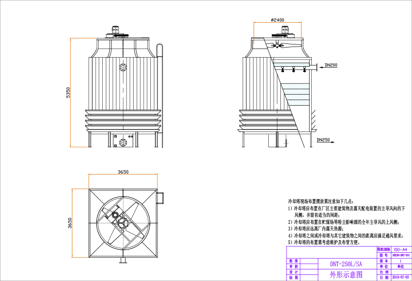 冷卻塔安裝有爬梯、護(hù)欄,便于日常檢查、維修。 |
